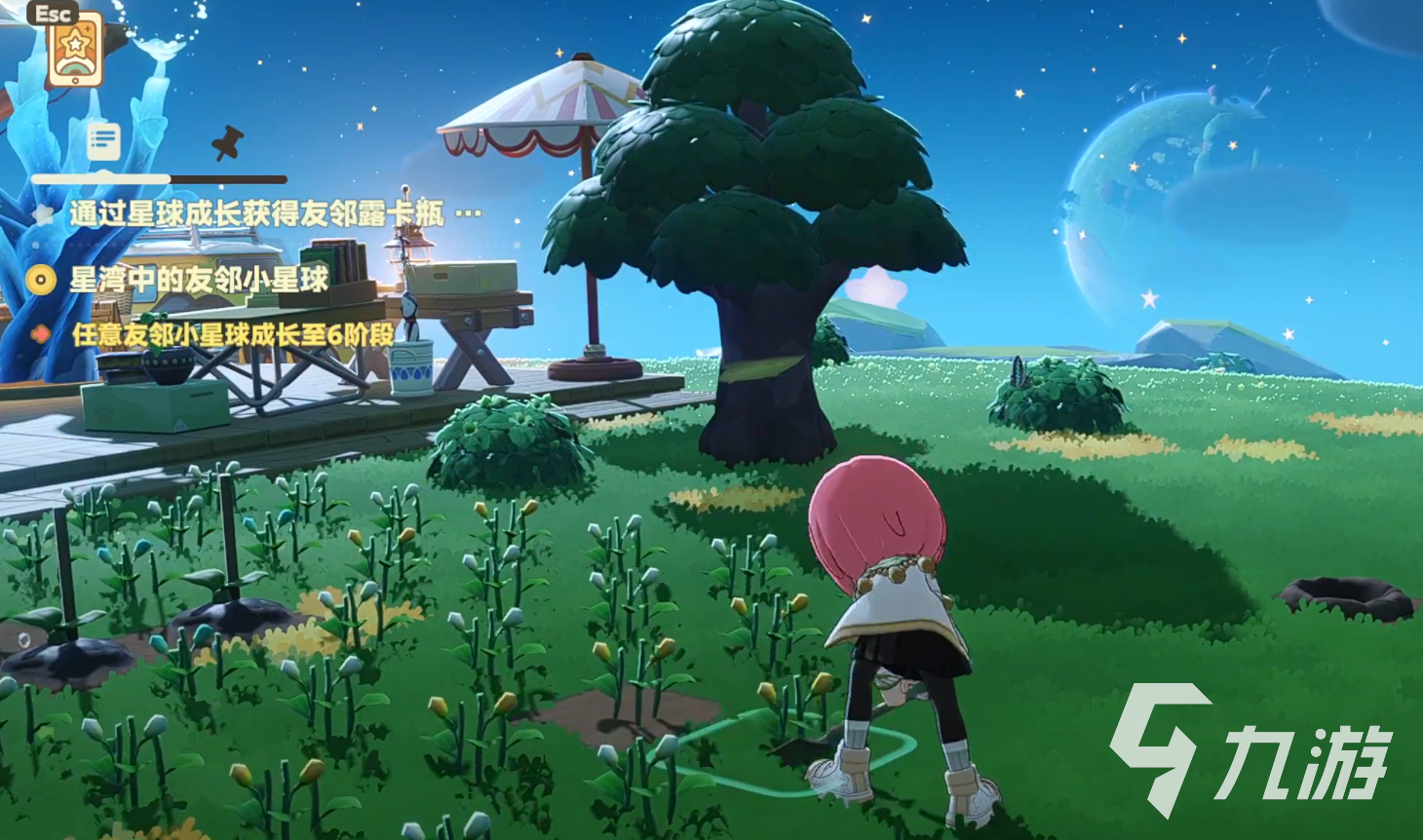 最让人眼前一亮的是星海探索玩法,开着星轨汽车去不同的星球串门,每个星球都有自己的主题,每个星球上都有专属的动物NPC,比如有的星球有擅长种地的松鼠,跟它搞好关系,它会教玩家怎么种出更高产的作物,还有的星球有会做玩偶的兔子,能帮玩家解锁好看的衣服图纸,跟这些NPC聊多了还能解锁他们的小故事,慢慢知道每个星球的秘密。