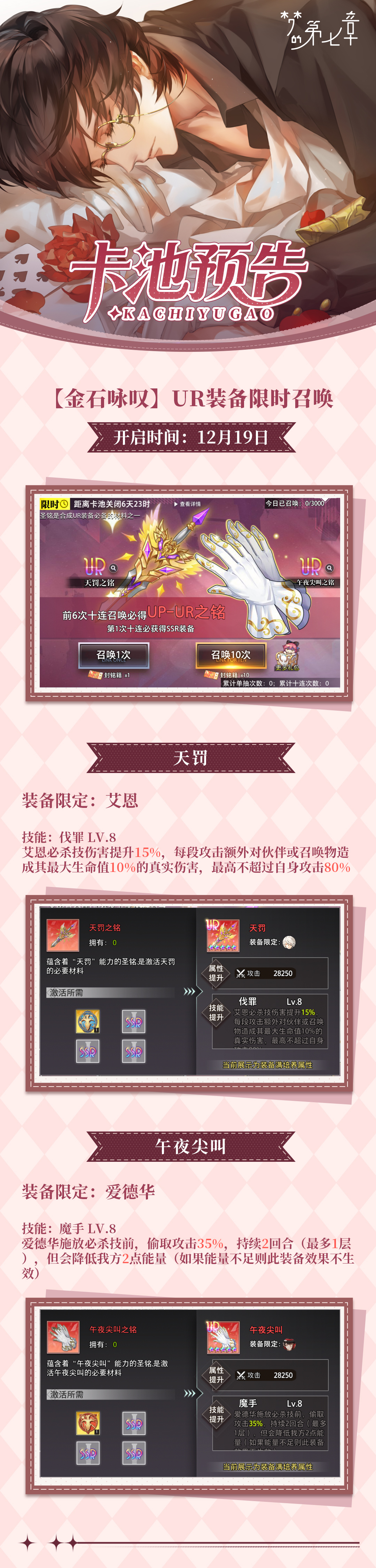 《梦的第七章》「新年集市」活动将于12月24日5点开启。新伙伴SP神曲·贝亚特丝登场;新年副本、限时神迹新年挑战、新年交易所开启;超值新年福袋限时售卖。参与活动可兑换UR装备、限定时装等超值奖励!