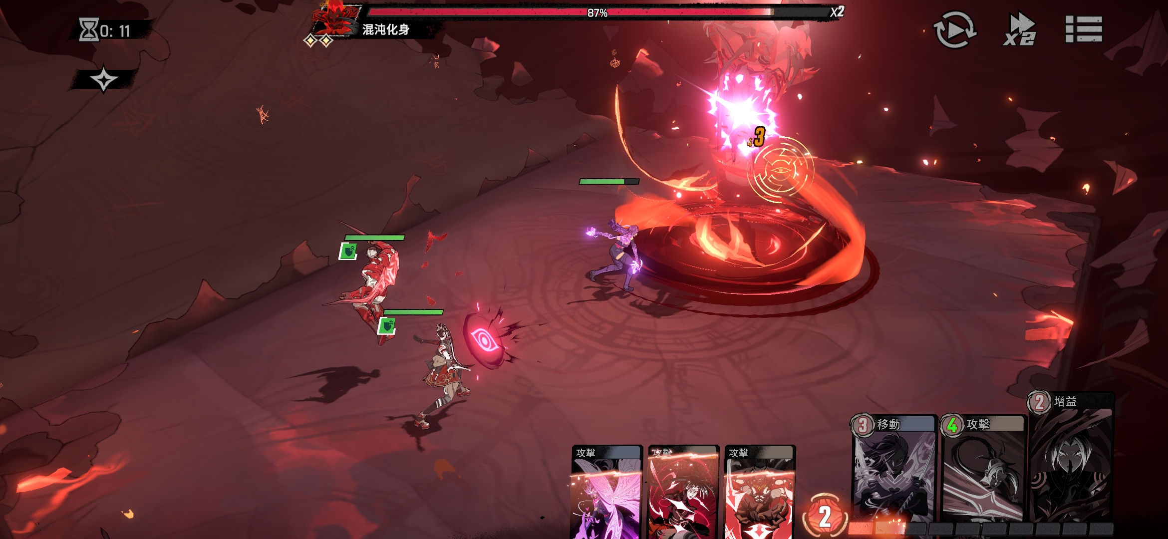 游戏主线当中大家会看到各种关卡需要挑战,大家需要选择3名角色放在棋盘格上进行搭配,那么在战斗一开始之后,角色虽然会自动攻击,但是主动释放技能的时机上面也是可以由玩家自己掌握的,因为右下角也会不断的刷新各种不同的技能卡牌,其中技能会根据目前全队角色共享的法力数值来进行消耗,因此使用谁的技能或者是哪一个技能,还有技能使用的时期,都是要根据大家的选择来进行释放的。