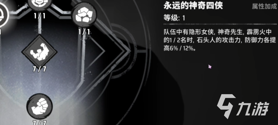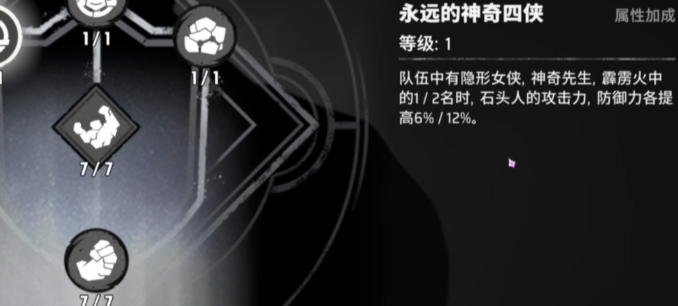 霹雳火、石头人、神奇先生与隐形女的组合,既有前排承伤,也有稳定输出和辅助。霹雳火的持续伤害能力在这套阵容里能最大化,石头人防御转化为伤害,同时嘲讽和击退敌人;神奇先生能为全队提供大招充能与增伤;隐形女则能提升全队生存能力。这种体系虽然在爆发上不及追击流,但优势是耐打、技能联动性强,适合长线战斗。装备方面,霹雳火高光推荐持续输出类道具,神器以双爆和攻击为主;石头人则偏向防御和嘲讽类高光,神器以生命和防御副词条为佳;神奇先生和隐形女则选择充能与辅助类神器即可。