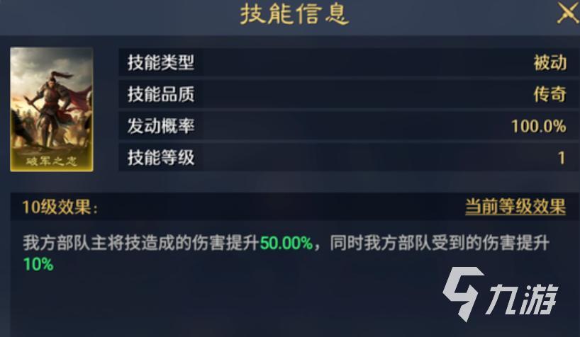 其实大部分平民玩家在体验九牧之野游戏的时候,他们会选择孙坚,毕竟孙坚具备勇挚刚毅的技能。而当他开始施展这个技能的时候,一旦自己的队伍受到伤害,就能够有效的降低30%的伤害,并且被动技能所造成的伤害就能够提升30%在这样的状态下,能够持续6秒钟的时间。其实他还自带被动技能,一旦受到普通攻击的时候,将会有20%的概率会自动触发被动技能,这样的话就能够造成一定的武力伤害,并且还能够产生30%的概率直接对敌人进行压制。
