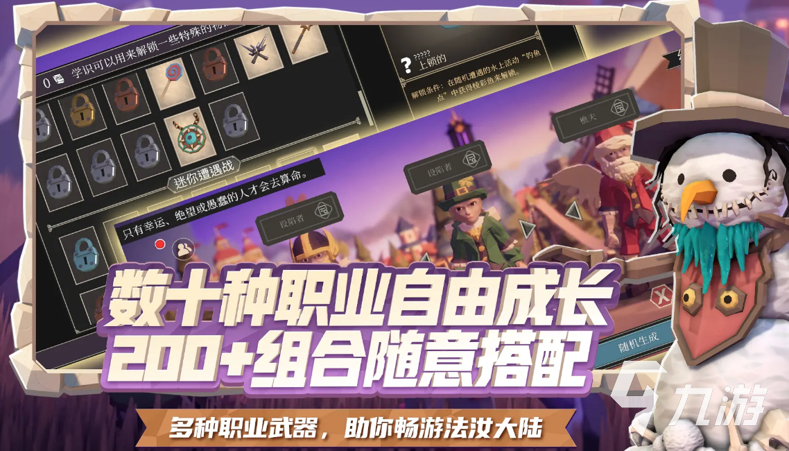 进入游戏最让人眼前一亮的就是有各种多样的职业设定,在初期会解锁基础的职业,需要玩家通过努力提升自身的等级,等级提高之后可以逐步解锁更多的职业,这些职业都各有特色,新手玩家建议选择铁匠作为初始职业,在战斗中有着高防御与高力量,攻防一体的特性可以提升自身的攻击能力和生存概率,猎人是完全不同的一种风格,可以凭借自身敏捷的身手与箭术进行战场边缘的远程偷袭,升级之后有着前行天赋,可以在战场边缘避开敌人,悄悄绕后进行偷袭,这职业适合喜欢灵活作战的玩家操作。