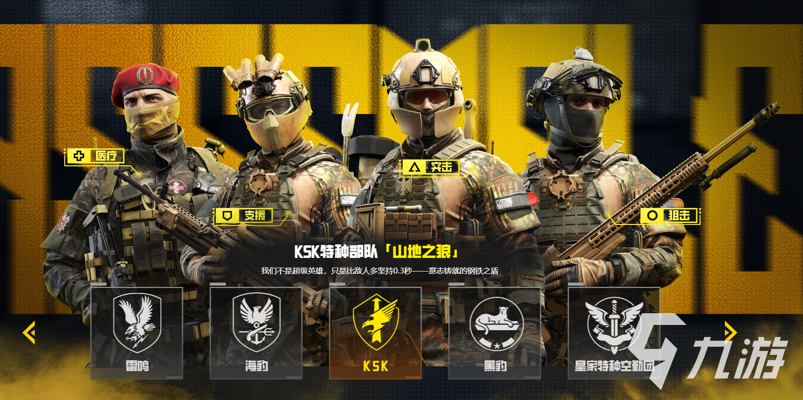 游戏内置的四大职能,也是非常符合现实生活当中反恐作战的,其中包含有进攻手、支援手、医疗兵、狙击枪手。