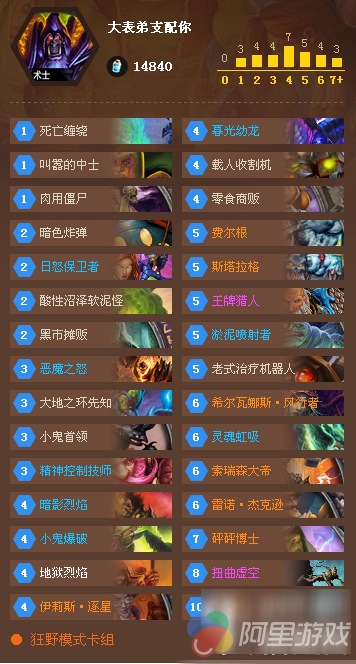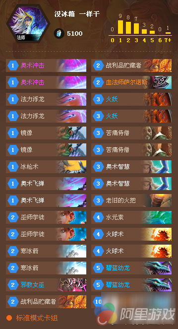 在传统的傻龙火妖法里去掉了冰箱,加入了冰枪,打法更加直接。这应该就是那种追求“来啊,互相伤害啊”的套牌,最终要依靠火妖站场比对面先刷爆伤害。我最近也在用一套很直接的火妖法,没有傻龙,最高5费,带了两把冰枪和一个冰箱,同样依靠战利品、奥术和碧蓝龙过牌,昨天刚从10级打到8级,有兴趣的童鞋可以自组尝试一下。