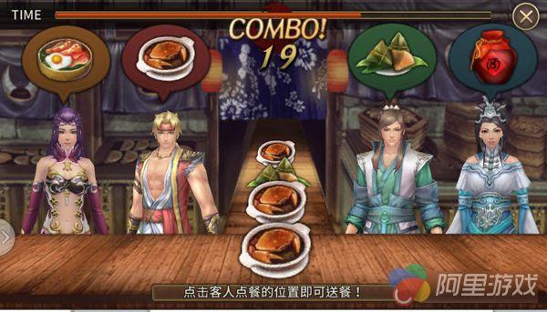 东北大街的边荒第一楼来扬州城开分店了!庞义为了拓展食品业版图,除了招牌雪涧香,也卖起烧肉粽,黯然销魂饭,美味蟹堡等南方美食。由于生意太好,店家急忙要招募各位玩家来打工!符合资格的玩家可进入活动,进行上菜游戏,分数越高奖励越多。进入活动的玩家将进行上菜游戏,其间玩家需要把才送到相对应的客人桌上,玩家需小心避免将错误的菜色端到客人面前,在时限内连续送对越多菜色,获得的奖励也会大幅提升哟!