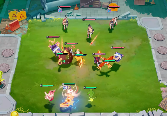 这些精灵外观看起来非常可爱,在对战的时候也会有不同的招式特效,每次战斗的时候会有多个技能连招,通过不同的招式搭配,能让玩家感受到热血沸腾的对战,这些精灵会有不同的品质,战斗的时候要合理利用这些品质,这样才能通过互相之间的克制获取更强大的战斗力,想解放双手的玩家,也不要错过游戏,里面不需要太频繁的操作,宠物的对战主打的也是战棋玩法,只要把角色放置到最合理的位置,他们就会自行战斗。