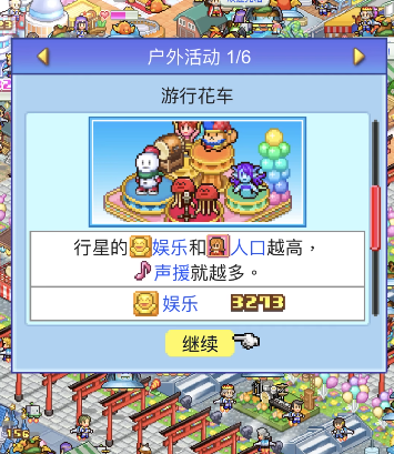 游戏的经营玩法模式,和开罗系列的作品别无他异,但是融入了大量的趣味性元素,例如,玩家可以在外太空内发展太阳能,亦或是在外太空建立观察站,和基础经营玩法模式不同的是,玩家在星球建设期间,需要建立多种不同类型的商铺,其中不止包含有饭店、旅馆、医院等等,玩家还需要建立便利店,亦或是游泳池等设施,用于增添整体星球的繁荣度,这样才能够增加外星人前往玩家星球的欲望。