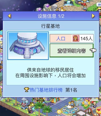 2、人口的数量和星球上搭建的行星基地数量有关。想要提高星人口数量,不能一味的增加行星基地,在搭建后还要注意周围功能性设施的建造,以及环境的搭配,这样才能吸引地球人来居住,否则就可能无人问津。
