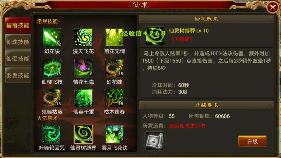 首先施展的鬼舞枯藤拥有眩晕技能,之后是叶舞轮回技能增加攻击,加自身状态属性的两个技能都加上。鬼舞枯藤技能三秒过去后,用落英千重技能导盲,用过后,冷却短的技能又能在用。然后用仙灵树。技能“仙柳飞枝”释放后,马上用一个“情花七毒”产生一个附加的效果,这两个要连续释放。
