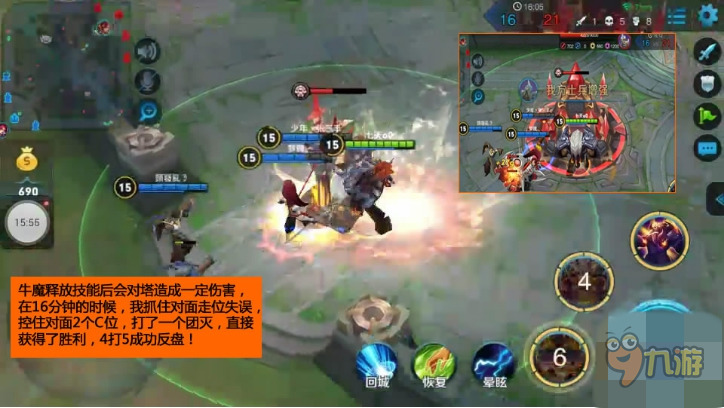 3、牛魔,想要玩好,对操作还是有一定要求的,这个多练几把就可以了,没有太好的办法。这个英雄总得来说还不错,值得入手,金币富裕的话可以考虑。(他在打擂台的时候很给力)