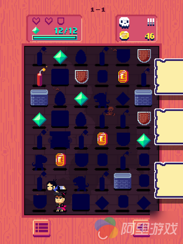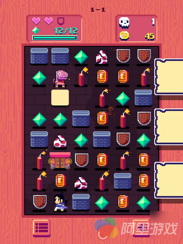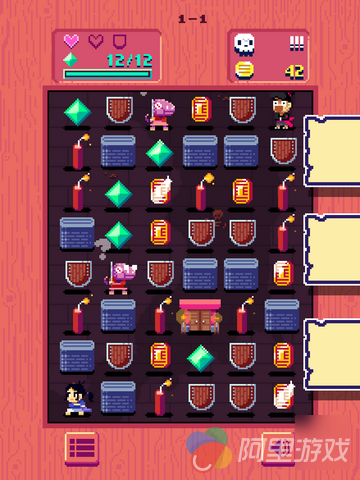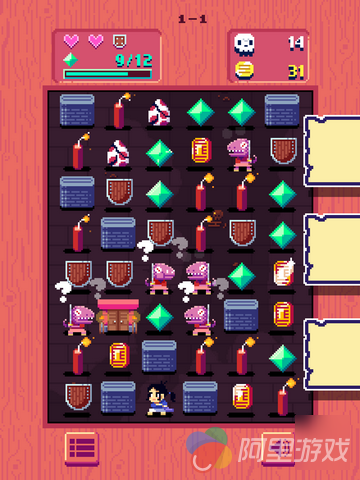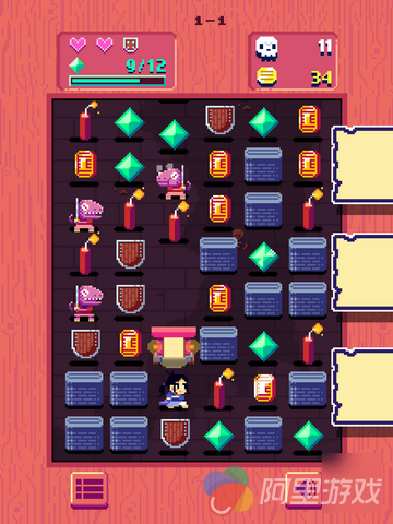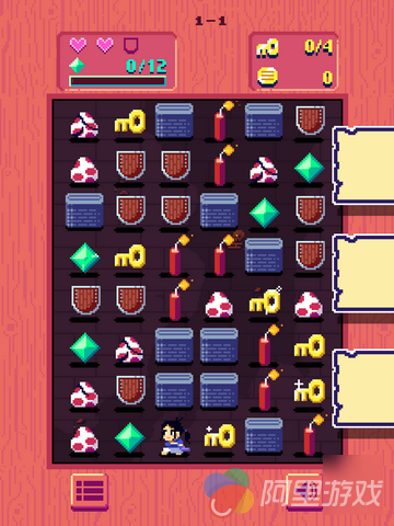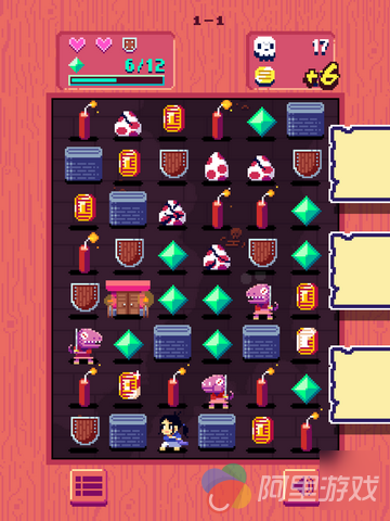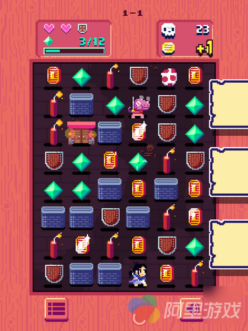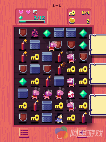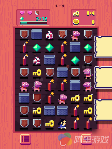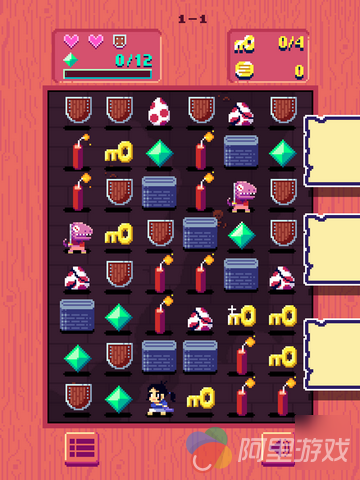 在本作中,基本上对战过程中的每一样可以用来消除的元素都是有作用的,盾牌会为我们提供防御力,而宝石则能够让玩家学习并且释放强力的技能。炸药的功效自然不必多说,绝对是游戏当中的大杀器。而至于钥匙,则关系到我们能够进入下一个关卡,在每一局游戏中,玩家所需要消除的钥匙数量都是有所要求的,只要满足要求,系统就会将通往下一个关卡的大门解锁,而我们要做的就是一步步走向大门。