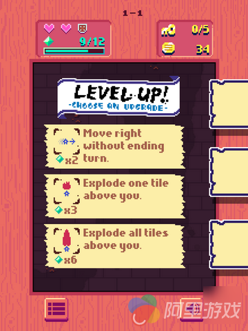 除了必要的道具之外,每通过一关,玩家的等级都会有所提升,而与此同时我们也可以解锁更多的技能,这些技能分为主动与被动两种,前者每次释放均需要耗费宝石,并且基本上以瞬间移动或者范围的AOE为主,而至于后者则只需要通过一次性的学习就能够领悟,不过基本上都是一些辅助的作用。