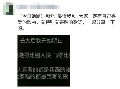 今天的话题是#歌词最懂我#,晒晒最爱的歌词截图。大家一定有喜爱的歌曲,或者特别感同身受的歌词吧,一起跟大家分享一下吧。