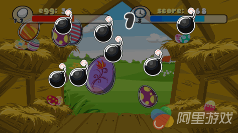 《小鸡爆蛋(Chicken Eggs)》的玩法非常简单,玩家只要在规定的时间内打碎屏幕上的鸡蛋即可。游戏的左上方显示本关需要打碎鸡蛋的数量,屏幕的右上方则显示剩余时间,每一关结束需要打碎的鸡蛋数都会逐渐递增,理论上来讲游戏时永远没有通关的时候的,游戏的后期由于人类的反应极限加上APM速度的限制,游戏会变得非常艰难,小编作为一名单身20年之久的宅男,在点击速度上也显得有些力不从心,很难想象这是一款给小朋友玩的游戏。