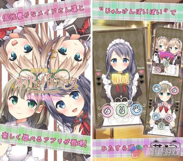 本作是一款休闲类手游,游戏中玩家将与4位可爱的女仆的一起猜拳,猜拳获胜后将获得一定点数,通过点数可以解锁主线故事。而且,通过网路机能还能与全国的玩家比拼得分哦!