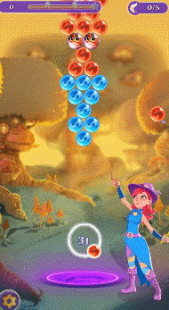 仅从游戏静态截图看,或许你会认为这是一款卡通版的腾讯泡泡龙,但假如你开始上手游戏,这种想法会被瞬间扼杀。游戏采用迪士尼卡通画风,魔女不再是前代的巨乳妹,而是更为耐看的邻家姐姐款。不同方式消灭泡泡会带来不同特效,光影爆炸、旋风、旋转、散落,丰富的展现方式搭配上魔女适时的舞动,给人一种融入魔法世界的感觉。