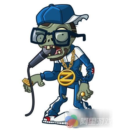 说唱僵尸:外形拉轰,本身并没有什么特别的技能,也比较脆皮,某种程度上来说可以当做是路障僵尸的升级版,但是如果是在劣势被太多说唱僵尸靠近那就会被无限滚雪球了,范围秒杀让你有阳光种植物也没用。对付它的方法就太多了,尤其是抛射型进攻的植物对他伤害最高。