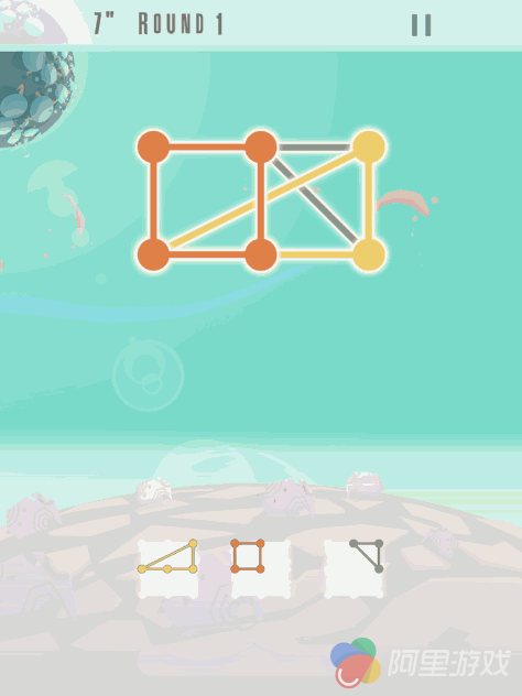 《重叠:空间推理(overLap)》的玩法还是很容易理解的,玩家在游戏中将面对三个不同形状且叠加在一起的图形(数量会随着关卡深入而增加),而你要做的就是通过观察来看出哪一个图形是位于最下面的,并通过下、中、上的顺序来将图形依次正确的挑出即可过关。不过看似简单的玩法到了实际游戏中可就不那么容易了,首先每个关卡都会给玩家们设定一个分数线,只有达到了相应分数才能过关,而且关卡中还加入了非常严格的时间限制,玩家必须在时间限制内完成足够分数的图形才能过关 ,简单来说就是让你在X秒内搞定N个图形,虽然成功完成一幅图形都能获得2秒的时间奖励,但也依然会带来很强的紧张感,所以本作还是非常考验玩家的观察与推理能力的。