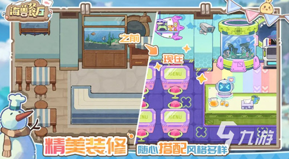 海兽餐厅还没有下载方式,对游戏感兴趣的玩家可以在九游APP预约。海兽餐厅以海洋为背景,构建了餐厅经营+海域探险双向联动的核心玩法体系,玩家的体验围绕餐厅运营所需的资源获取、服务优化,与探险过程中的食材收集、场景探索展开,两者相互支撑形成完整的游戏循环,在餐厅经营模块中,玩家首先需关注餐厅等级的提升,等级不仅决定菜单板可容纳的菜品数量,还会解锁新的经营功能获取更高收益。