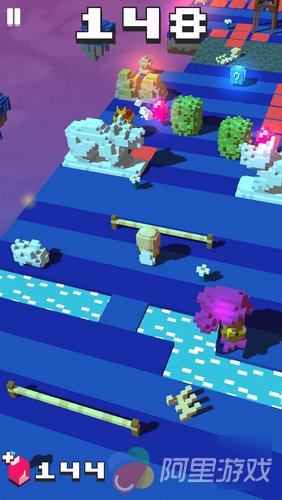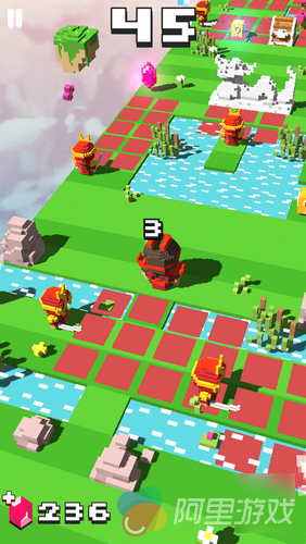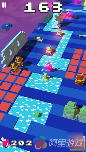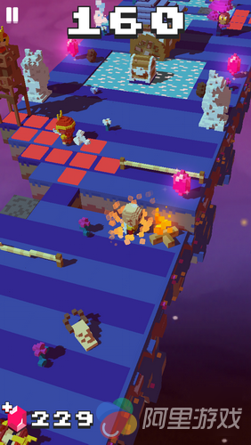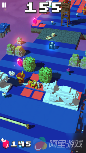 操作方面,本作的设定比较简单,点击屏幕可以控制角色前进,同时,左右的滑屏能使角色实现在这两个位置上的自由走动。此外, 长按屏幕并迅速释放也可以让角色飞到很远的地方。不过根据实际操作的情况,小编发现由于游戏中的判定并不仔细,因此经常会出现误操作的现象,这一点开发公司还要多多注意。