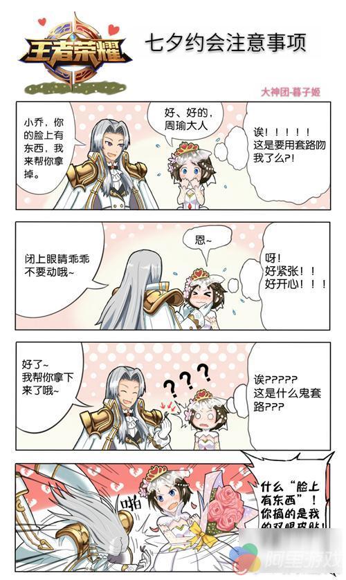 王者荣耀搞笑漫画。小编带来四格漫画之七夕约会注意事项,希望能够帮到正在玩王者荣耀的玩家朋友。