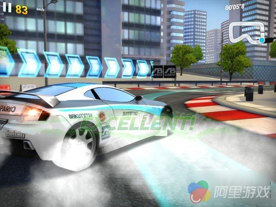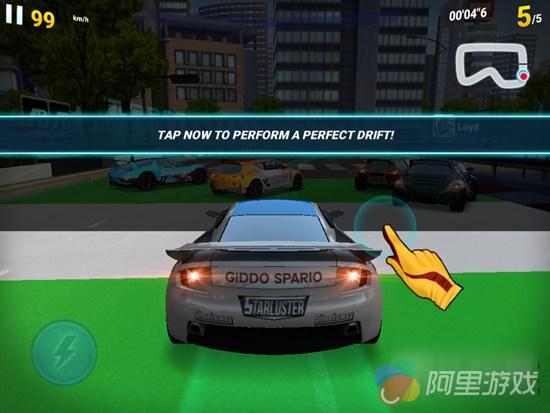 当然这样并不代表游戏之后就没有操作性,在赛道当中会存在绿色的区域,这些区域是用作漂移的,当赛车到达区域之时只需点击屏幕即可完成漂移,可以说操作极为简单。