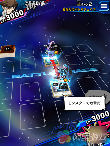 在刚进入游戏的时候,玩家将先会看到暗游戏和海马濑人两个《游戏王》中人气颇高的角色,玩家需要在他们两个中间选择其中一个作为自己所控制的主角,选定之后玩家将会与另外一个角色展开游戏中的第一场对决,在该对决里玩家将首次感受到游戏的魅力,并且熟悉游戏中的主要操作和玩法。与传统卡牌游戏一样本作采用了回合制的玩法,在进入本方回合之后,玩家可以摸一张手牌,玩家直接拖动即可将牌打出,玩家可以选择召唤卡牌角色也可以选择暂时将其背面朝上放置在桌面上。而进入攻击阶段之后,玩家也是通过拖动选择攻击目标。两名角色中LP值最先耗尽的一方将以战败结束对战。