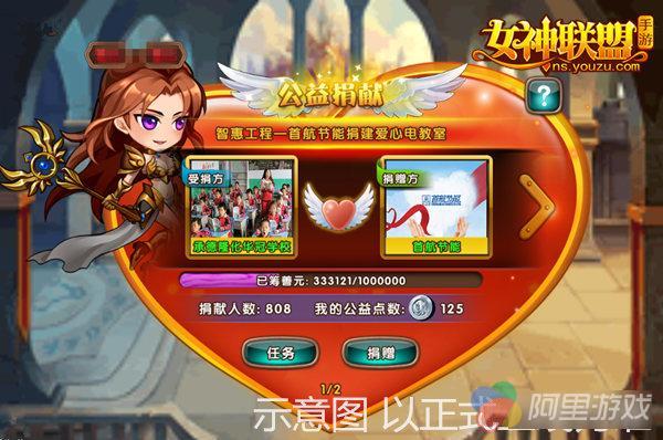 新版来临之际,《女神联盟》ios平台正式与公益平台一起善源合作,为广大勇士实现公益梦想。勇士们每日完成指定任务即可得到公益点数,可对任意未满公益项目进行捐赠,每捐赠1点公益点数,会由相应的捐款方对受款方捐赠0.1元,同时献出爱心的勇士也将获得女神的谢礼。让我们和女神一起,谱写爱的诗篇!