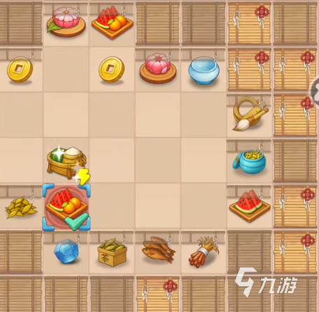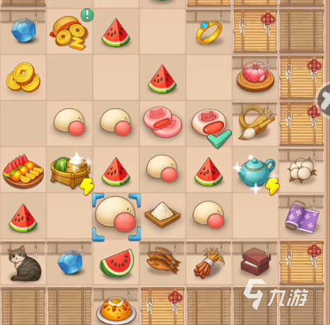 《梦幻消除战》采用了消除玩法,同时附带有古风经营模式,玩家在挑战主线关卡时,需要通过消除机制,交换相邻物品,例如让玉佩和竹简等等物品进行位置的更替,从而触发消除,同时,不同类型的物品会产生迥异的效果,例如玩家消除面点时,则有一定概率恢复体力,亦或是取得游戏店铺当中的配方。