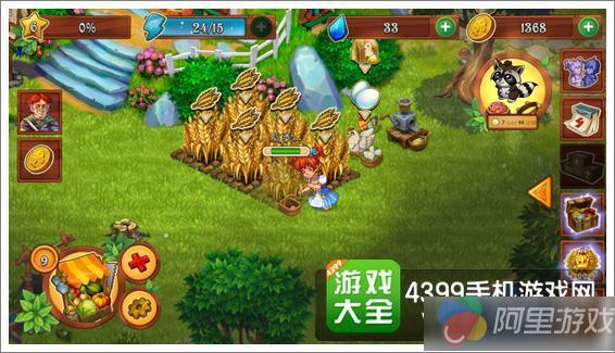 游戏中的主角是一个可爱的小女孩,而我们的任务就是帮助她打理整个农场。玩家们只需要点击相应的土地就可以进行播种,当农作物成熟之后也只需要点击土地,小女孩就会自己跑过去收获谷物。游戏采用了按键与道具点击的模式,玩家们只需要合理的点击相应物品,小女孩就会自己去完成,包括了播种粮食、收获谷物、喂养牲畜、建设房屋等,这种需要玩家们亲自去控制的过程,能极大的提升玩家在游戏中的亲身体验感与成就感。