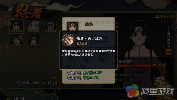操具-天刃乱万:使用卷轴通灵出无数的忍具暗器向前方激射,之后将敌人远远击飞。技能伤害很高,攻击范围为全屏,但引导过程较长,不适合起手。