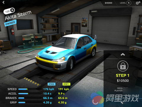 在刚进入游戏的时候,玩家需要先买一辆赛车作为自己的初始座驾,不同的赛车属性都是不一样的,而且这些车辆的外观都是可以改变的,而经过了升级之后,赛车的属性会得到进一步的提升。一切准备就绪之后,玩家即可选择赛事开始挑战,不同等级的赛道赛事难度都是不一样的,当玩家获得了比赛的胜利之后将会获得的金币奖励,利用这些金币玩家即可进行升级。而除了生涯模式之外还有普通的竞速模式可以让玩家进行选择。