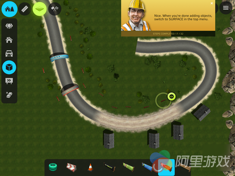 此外,游戏中还加入了赛道编辑器系统,与其他的竞速游戏相比,本作中的编辑器系统算是比较强大的了,玩家可以自己绘制赛道,并且可以针对赛道的弯道进行微调,而对于赛道上的材质类型、计时点的位置、终点位置都可以自由选择,甚至连场地周围的环境、植被和挡板都可以让玩家自己决定,而在打造好自己的赛道之后,玩家可以驾驶赛车自己先体验这条赛道,并根据体验再进行调整。值得一提的是,这个模式仅仅能够在游戏的移动版中体验。