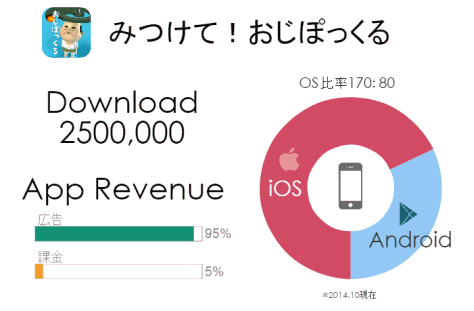 也是巧了,在这之后知名电视节目“ZIP先生”在做一个流行手机程序的专题企划,在介绍找到了一个女孩子正好在玩《寻找迷你大叔》,虽然游戏在节目中只露出了5秒钟的时间,但是节目播出的1分钟时间里,游戏的下载量突然上涨了5万次。甚至连不少香港和台湾的用户都来下载,或许是因为这些地区的文化比较相近吧,要知道除了日本市场之外,Appliss就没有做过任何地区的本地化。