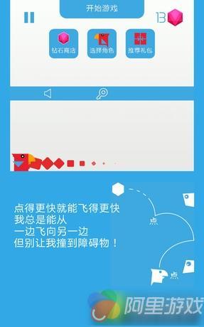 如果你刚刚打开这款游戏,看到游戏的界面,也许你并不会感觉这是一款多么特别的作品。扁平化的风格,让这款作品的画面看上去非常简约,加上简单的配色,这并不是一款能从视觉感觉带来刺激的作品。那么这款作品怎么玩呢?一句话就可以总结,点击屏幕即可。一只鸟,加上点击屏幕,这不就是像素鸟的玩法么?这是一款与像素鸟有着相似之处的作品,然而仅止于相似。