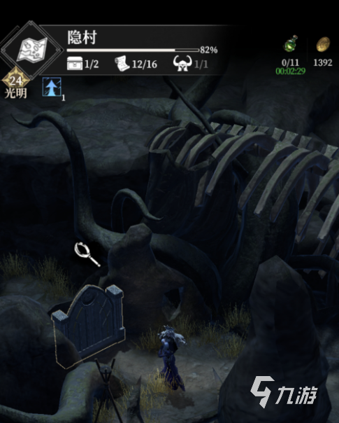 隐村门的入口就在暗火幽谷,然后盯着地图往右下角走,这个入口相对而言还是比较隐蔽的,会被一大堆的藤蔓挡着,如果没有仔细的寻找,根本就不会看到。在扒开藤蔓之后就可以看到有一个山洞顺着往里面走,那就是隐村门。不过不要过于的着急,这里会有一个精英怪玩家需要将精英怪打败,运气好的话还可以拿到青铜钥匙在后面就需要用得上。接下来的核心那自然就是拼线索,还有找机关。在找到线索之后,那自然就可以顺利的通关,不会浪费太多时间。