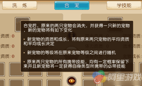 PS:1 注意携带认证技能的宠物是无法进行合宠的,要合宠,先消除认证啊!!