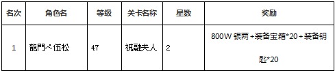 奖励内容:木宝箱*5、铜宝箱*5、木钥匙*3、铜钥匙*3、高级传承卷轴*5、拉面*5,银币*5000,金币*50