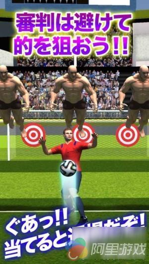 不过玩家们在射门攻击这些肌肉兄贵时必须特别注意,有时场上除了肌肉兄贵阻挡玩家们射门之外,还会有裁判也会突然登场,玩家们如果不小心射到这些裁判,可是会因此而被发红牌退场的唷,想要挑战高分目标的玩家们,如果看到裁判可要记得小心避开他们才好!