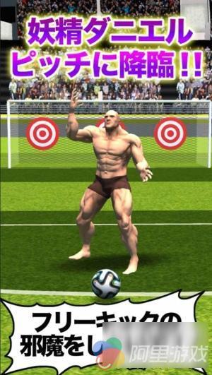 据官方表示,本作为一款让玩家们可以透过简单直觉的触控点击操作在足球场上挑战自由射球乐趣的小游戏,游戏故事背景描述原本在保龄球场打工的主角丹尼尔,如今在被炒鱿鱼之后,终于有机会来到和平的足球场巨蛋,并因此而提起勇气挑战足球场上的自由射球挑战,在这个只属于自己的舞台上缔造辉煌的纪录成绩!而在游戏玩法方面也非常简单,当玩家们在进行自由球射门的时候,场上会出现许多肌肉兄贵阻挡玩家们射门,玩家们可以利用射球将之给一一打倒,借此来顺利完成射门的目标!