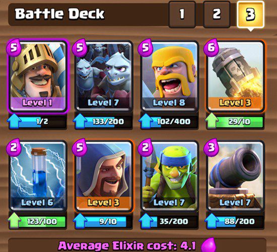 基本同上,但不要使用火箭!你可以用上述的选项1或者2推倒一座塔,然后防守。我通常会放下一个加农炮,并用哥布林投矛手保护它不受对手的组合伤害。在对手的推进部队身后放下野蛮人,迫使它们掉头冲锋,然后用亡灵大军干掉它们。