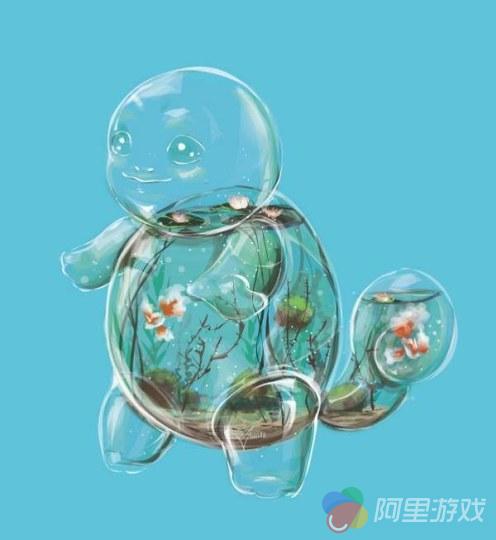 杰尼龟拥有出生后需要一段时间才会变硬的龟甲,十分富有弹性,即使用指头按压,放开后也能马上恢复原状。杰尼龟的壳不仅仅用来保护自己,它圆形的壳和表面的沟壑减小了它在水中的阻力,让这只精灵能高速游泳。