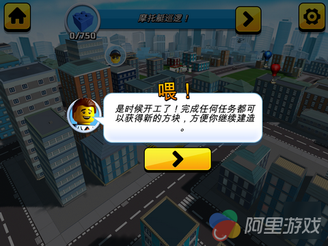 完成任务之后,根据玩家的完成情况玩家将会获得一些乐高砖块的奖励,这些砖块将会被用在正在建造的建筑物上,玩家可以查看到建筑物的建造进度,而当一栋建筑物建造完成之后,玩家就可以选择下一个要开始的建造任务,除了建筑物之外,玩家还可以制造出直升飞机等交通工具,让自己的城市变的更加丰富多彩。