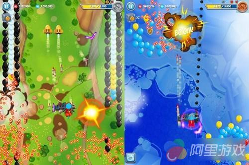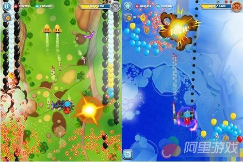 《超猴打气球》是一个从塔防游戏改造过来的射击游戏,游戏非常有自己的特点,首先里面不会有可恶的敌人,不会有杀戮,所有“对手”就是一个个气球,或由气球组成的“生物”;其次,不要看画面元素密集,但这绝对不是一个弹幕游戏,甚至不会有任何一颗会让你挂掉的子弹,你要做的就是尽可能多的射破气球,达到进入下一关的要求,挑战更多的破球百分比。此外,游戏的升级元素非常丰富,可以左、中、右三块分别添装与升级不同的武器。