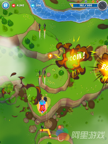 至于操作方面,本作与一般此类游戏相同,超猴本身会自动保持射击状态,而我们只需要以触屏的方式控制角色走位即可。不过这里与前几天小编为各位介绍的《星虫战争》不同,在《星虫》中只要玩家手指离开屏幕,系统就会自动暂停,而本作则不是,气球们会继续移动,不过由于没有什么杀伤力,所以也并不可怕,只不过可能要损失一部分资源了。