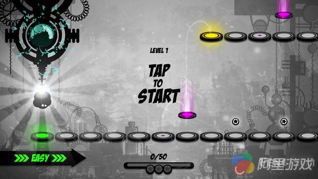 《永不言弃2》作为一款节奏类游戏,与主流音乐手游在玩法上还是存在较大差异的。在一般玩家眼中,音乐游戏应该是玩家自己弹奏一首曲调,而本作则是反其道而行之,需要玩家跟随系统所赋予的乐曲,才能玩得尽兴。游戏开始后,主角会自动在一根一根相连的木桩上跳跃,玩家所能控制的也是*所能控制的就是人物的跳跃距离和高度,并且方法也很简单,只要点击屏幕就可以在人物落地的一刹那完成。