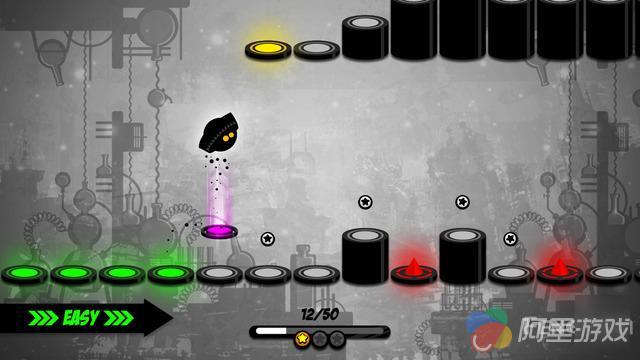 和大家说一下这款游戏的难点吧,不仅在于玩家需要更快的反应速度,及时选择跳或者是不跳,在每一次比赛的过程当中也需要高度集中注意力。游戏里在支柱跳跃的难度上做了不少的提升,这些支柱不再是固定位置,而是会出现突然的升降,所以要想成功通关,决定跳与不跳是关键所在。