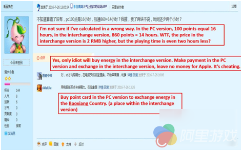 同时也是因为《梦幻西游互通版》的付费方式,邢山虎认为网易歧视了用户也伤害了苹果自身的利益:正是因为有40%的价格差,苹果用户反馈很差,所以网易就在游戏中,秘密开设了通道,暗示玩家可以利用这个通道,直接在电脑版中充值(电脑版比通过IOS正常渠道充值便宜40%),然后转移到苹果设备上继续玩。将游戏的充值系统整个绕开了苹果充值平台。而这一系列绕开苹果的充值通道直接造成了苹果平台的收入减少!