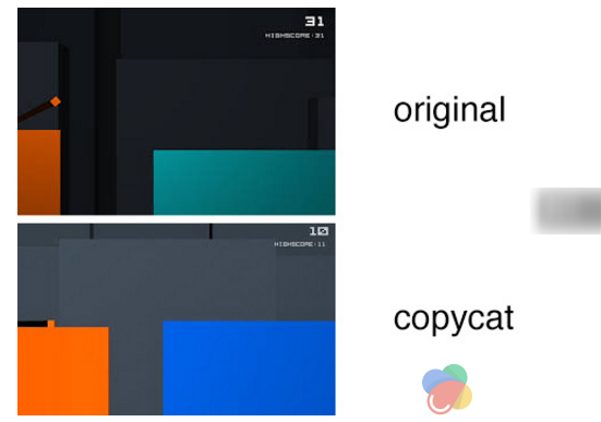 Ludum Dare的规则之一是,参赛的开发者需要把参赛所开发的源代码提供下载。不幸的事发生了,有人拿走《Chameleon Run》并改动了一些细节开始在App Store和Goole Play上售卖。他甚至还跑到了Touch Arcade的论坛上发帖。