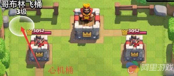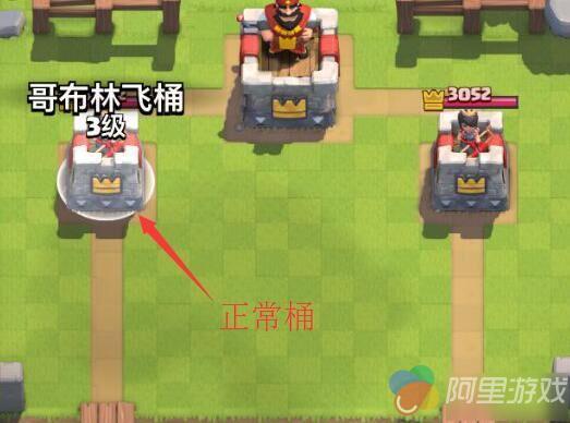 对手利用团伙防守哥布林桶,因为滚桶的距离没有滚木那么远,不能阻止对手的团伙,但是这里可以利用滚桶的野蛮人配合桶+预判火球来进攻,效果立竿见影。